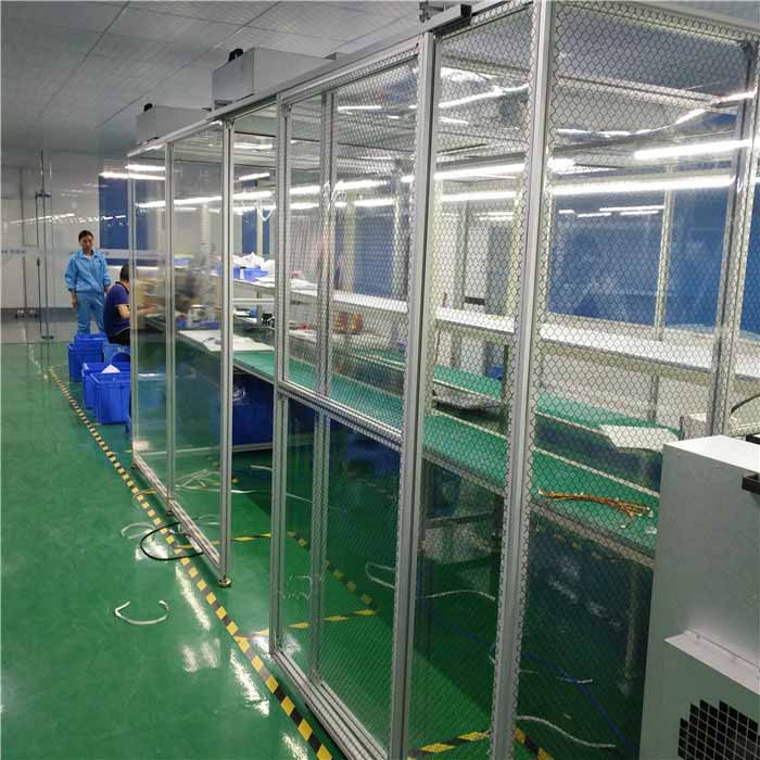 高效過濾器放置在由放在不銹網(wǎng)支架支撐棚架的托框上。頂部由盲板鋪蓋,密縫嚴(yán)密,四周用防靜電簾圍縫,四周底部利用正壓自然排風(fēng)等形式,使?jié)崈襞飬^(qū)內(nèi)達(dá)到潔凈度。潔凈棚其具有安裝快速、施工周期短、價格低廉、移動方便等特點(diǎn),如流水線作業(yè)區(qū)域,高精確度產(chǎn)品組裝區(qū)。